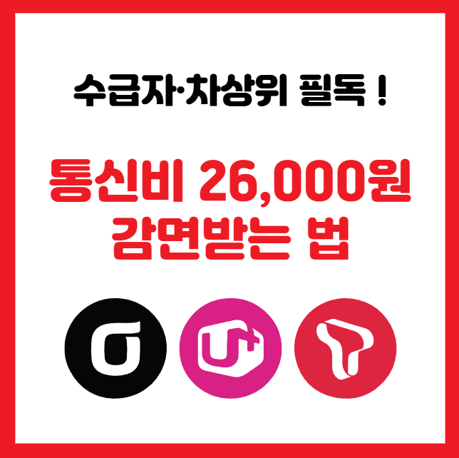 - 생계/의료급여 수급자: 월 최대 26,000원 감면 (기본료 면제 + 통화료 50% 할인)