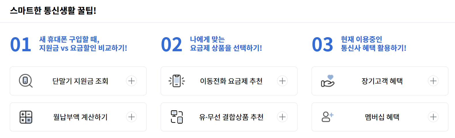 - 스마트초이스: smartchoice.or.kr - 나에게 맞는 요금제 비교 사이트